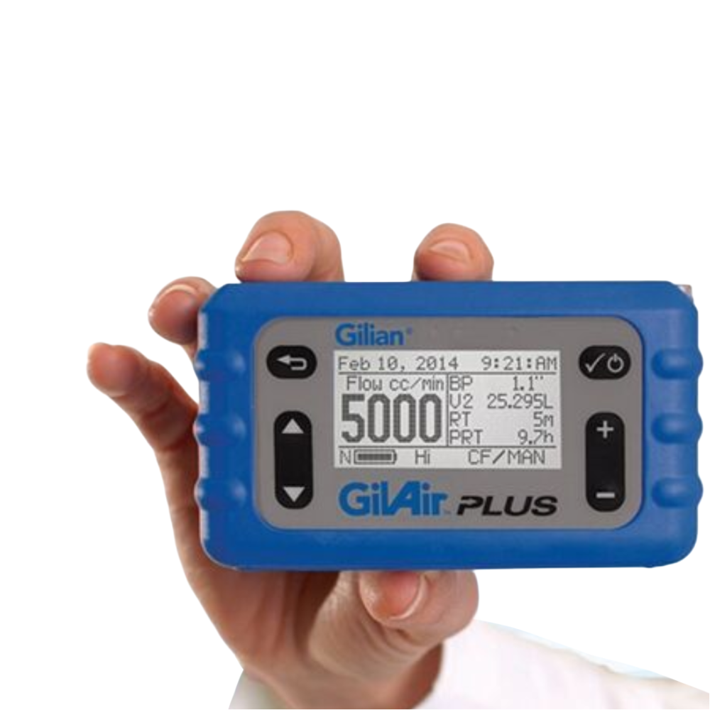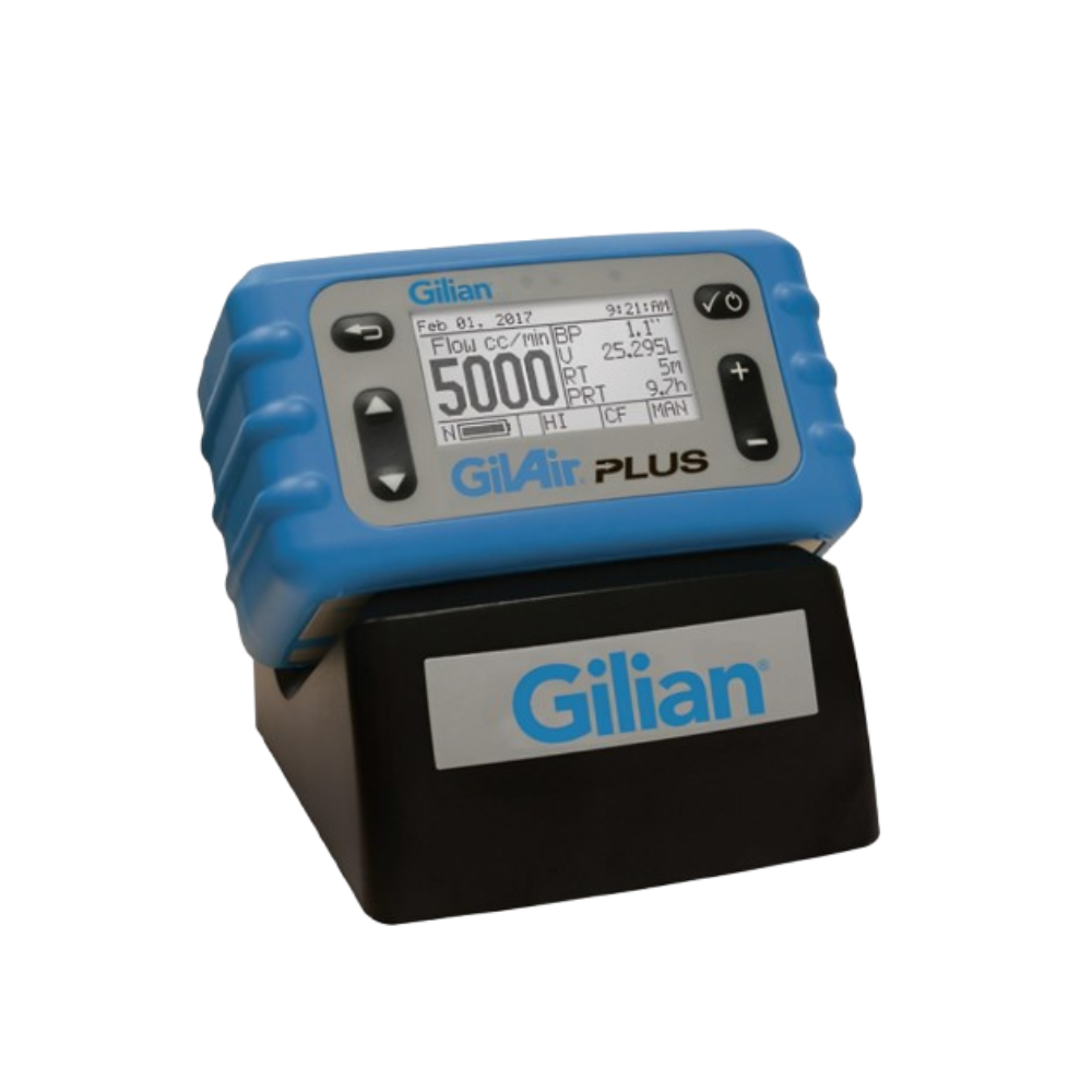 La GilAir Plus es una bomba de muestreo de aire portátil y versátil, desarrollada para higiene industrial. Permite realizar muestreos gravimétricos de partículas (polvo respirable, PM), vapores y gases, con control preciso de flujo o presión, sin necesidad de adaptadores externos. Incluye funciones como registro de datos, corrección a condiciones estándar (STP), recuperación automática ante fallas y compatibilidad con estaciones de acoplamiento para calibración y descarga de datos.